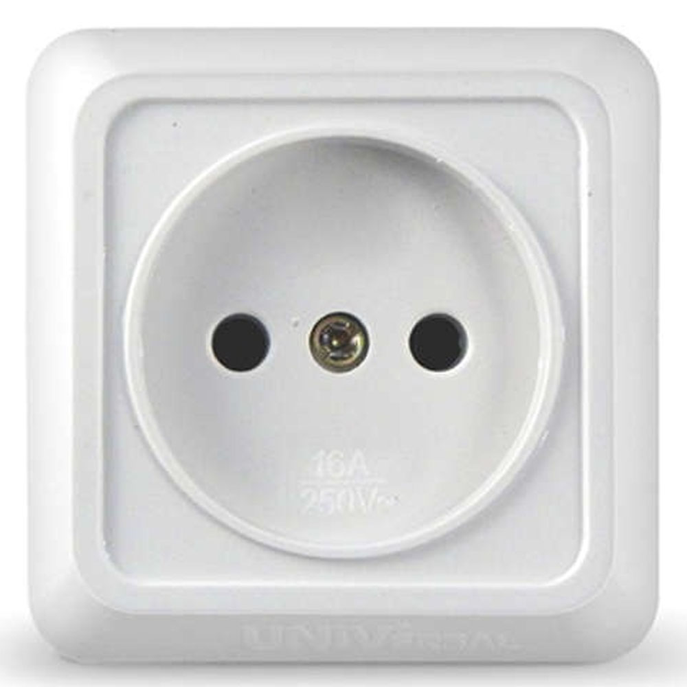 Розетка без заземления, белая UNIVersal Олимп О0022 - простое в установке электротехническое устройство накладного типа. Розетка имеет классический дизайн и цвет, идеально подойдет для монтажа в помещениях любого типа.