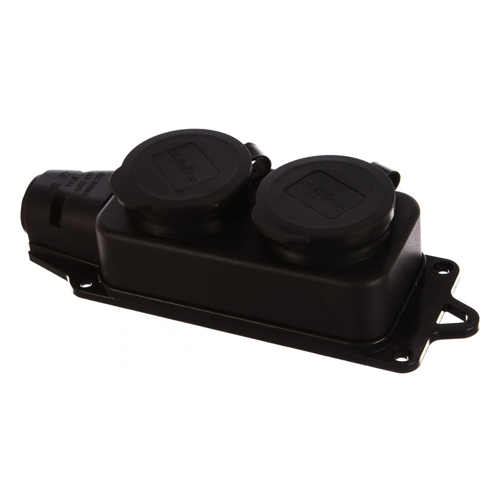 Однофазная 2-х местная колодка с заглушками, каучук UNIVersal 1027 используется для возможности сборки удлинителя с проводом любого сечения и длины. Изделие изготовлено из прочного материала, имеет защитные крышки для каждого розеточного гнезда.