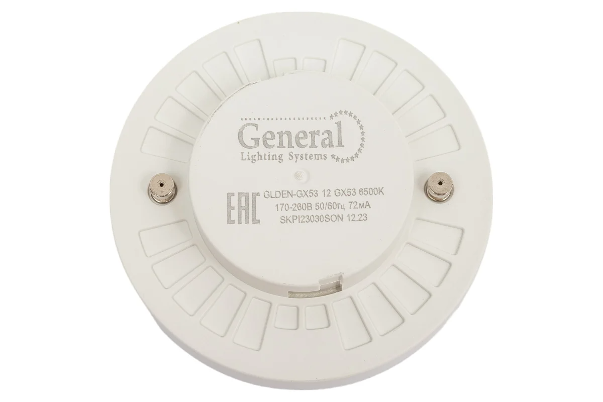 Лампа светодиод.GX 53 12Вт, 220В,матовое стекло,(6500К) холод. GENERAL