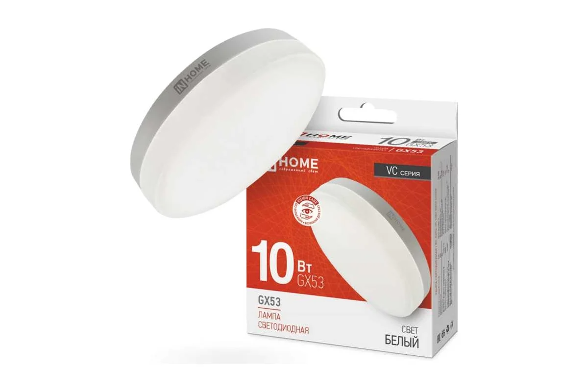 Лампа светодиод.GX 53 10Вт, 220В,матовое стекло,(4000К) нейтр. IN HOME