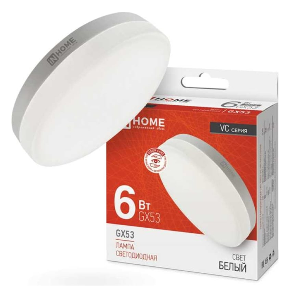Лампа светодиод.GX 53 6Вт, 220В,матовое стекло,(4000К) нейтр. IN HOME