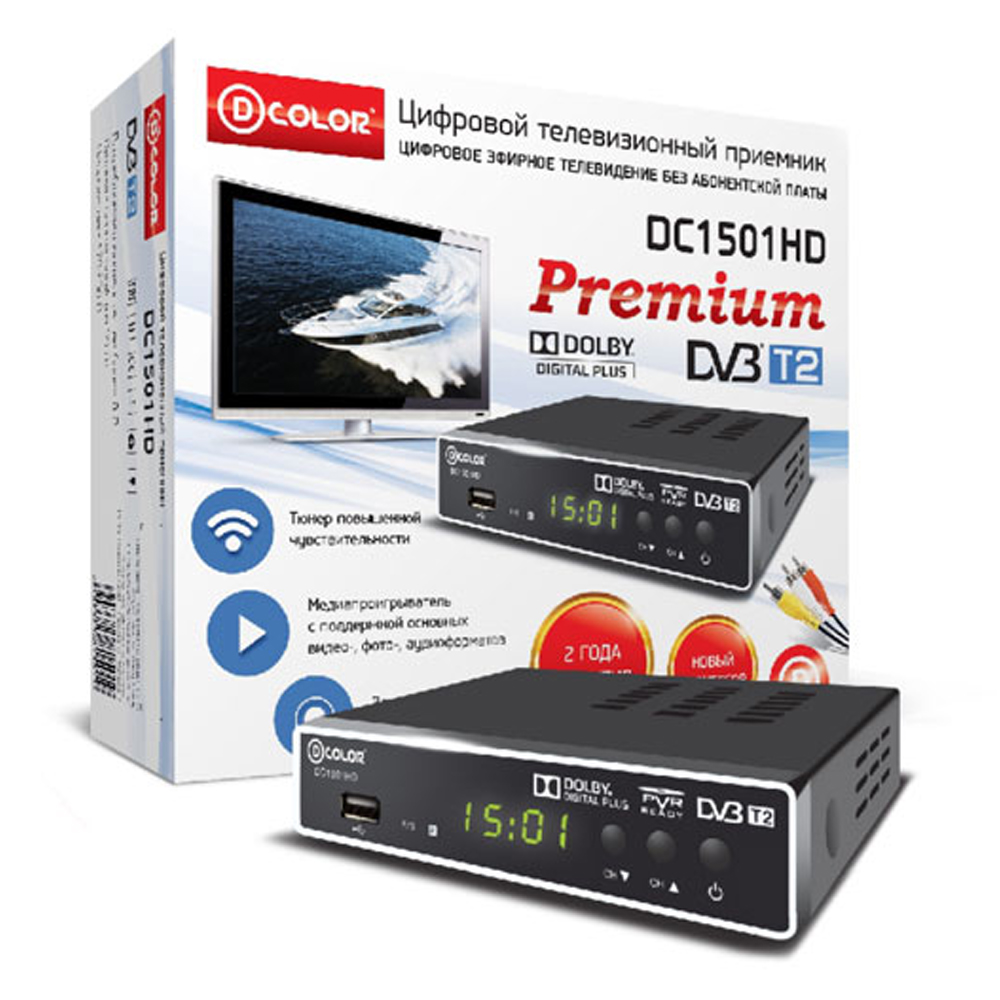 Комплектация: приставка, пульт ДУ, батарейки, кабель RCA,