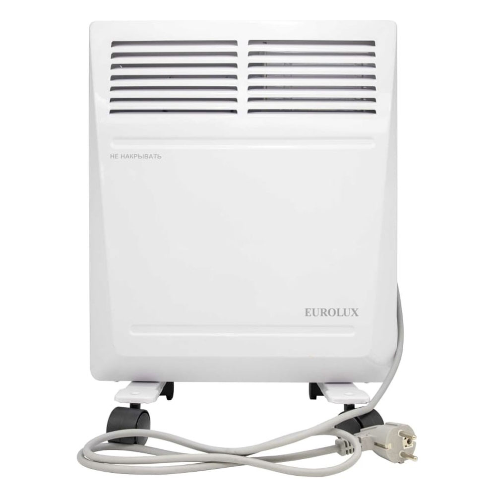 Конвектор Eurolux ОК-EU-1000 67/4/24 может быть установлен на полу на специальные ножки или на стене на специальном креплении. Данный обогреватель имеет два режима мощности: 500 и 1000 Вт. Конвектор оснащен механическим термостатом для установки необходимой температуры обогрева. Опорные ножки, оснащенные колесами, упрощают перемещение обогревателя по помещению.