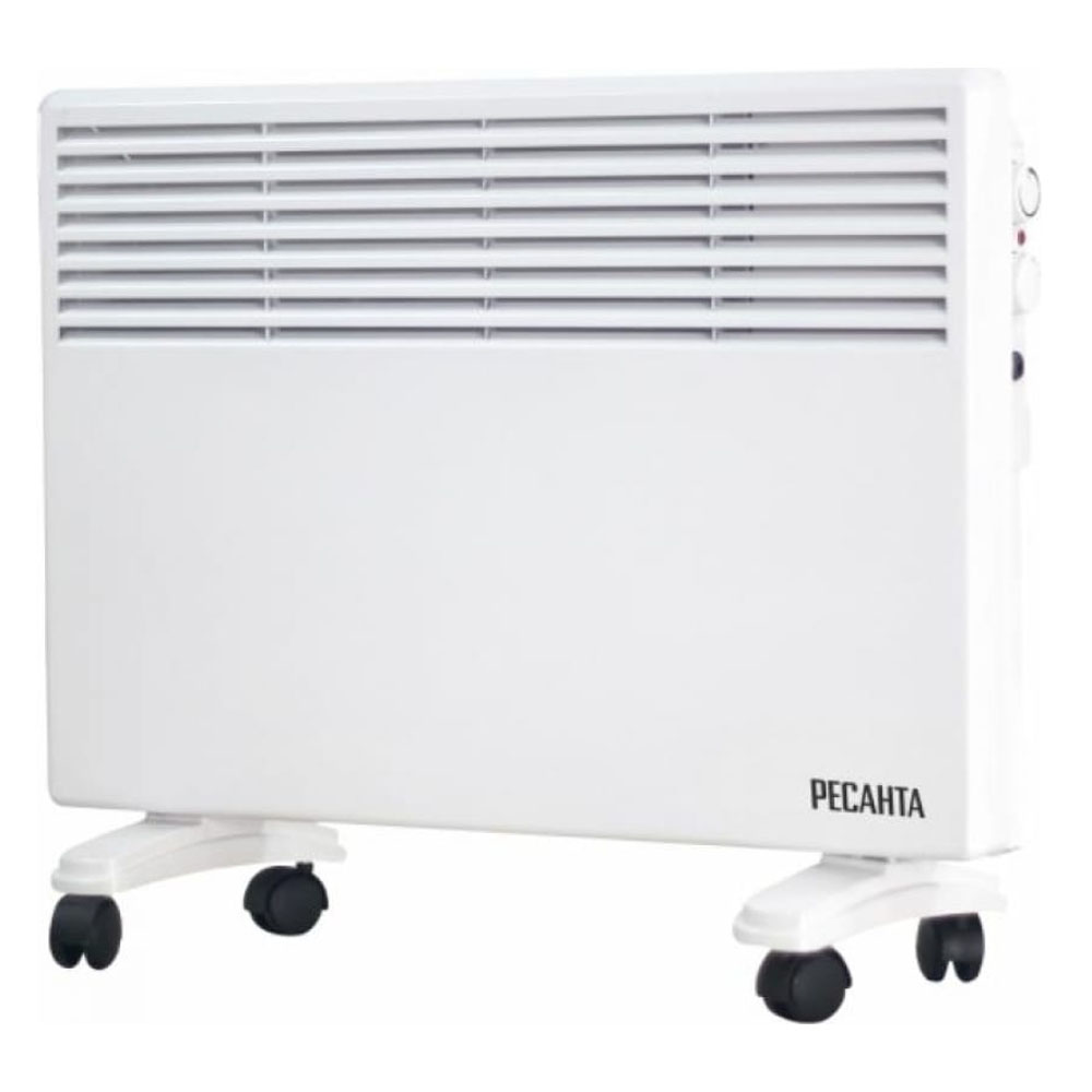 Конвектор Ресанта ОК-1500 67/4/23 - отопительное устройство для помещений до 20 кв.м. Обогрев комнаты осуществляется путем естественной конвекции. Помимо напольного монтажа конструкция предусматривает настенный монтаж. Крепеж для настенной установки в комплект поставки не входит. Для удобного передвижения устройство комплектуется колесиками. Поэтому пользователь может легко перемещать конвектор из одной комнаты в другую.