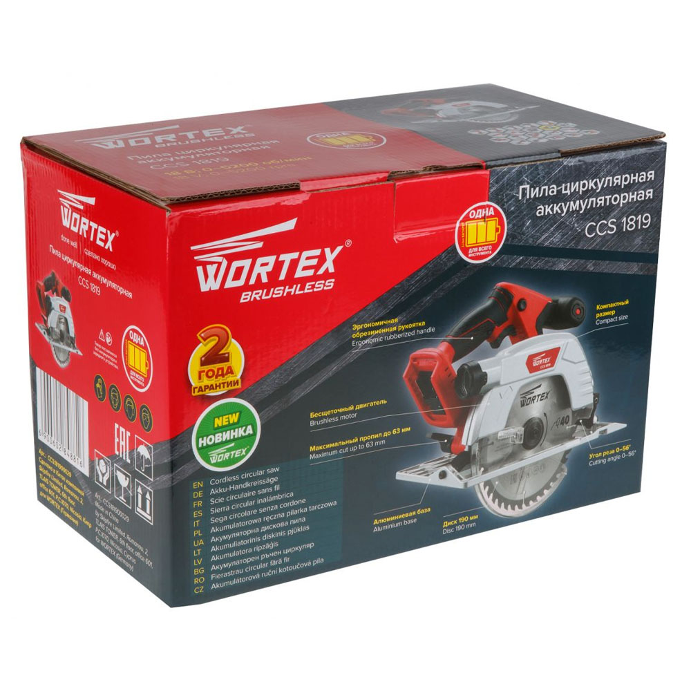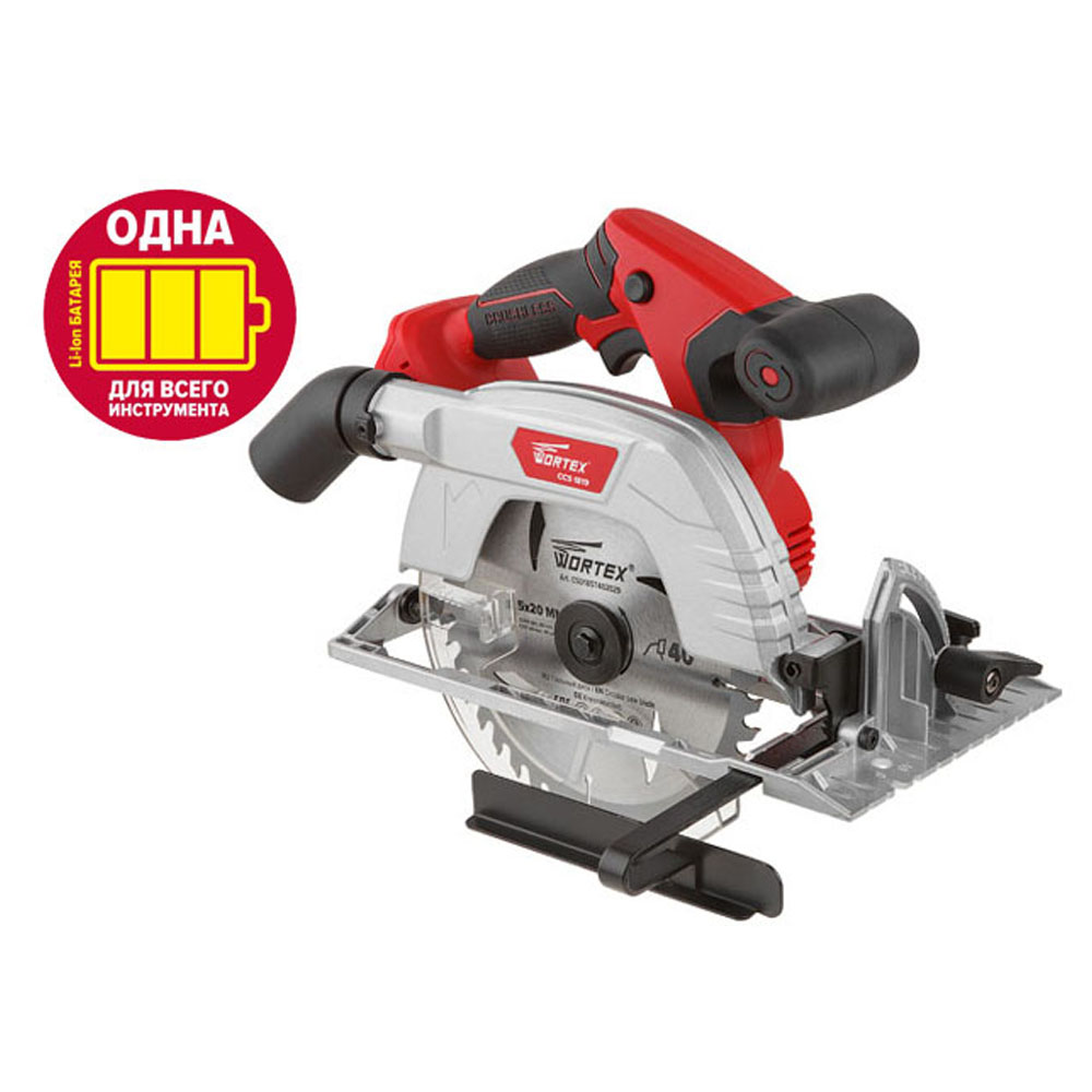 Пила цирк.аккумуляторная WORTEX CCS 1819 (18В, БЕЗ АККУМУЛЯТОРА и ЗУ, диск 190х20,пропил 63мм)