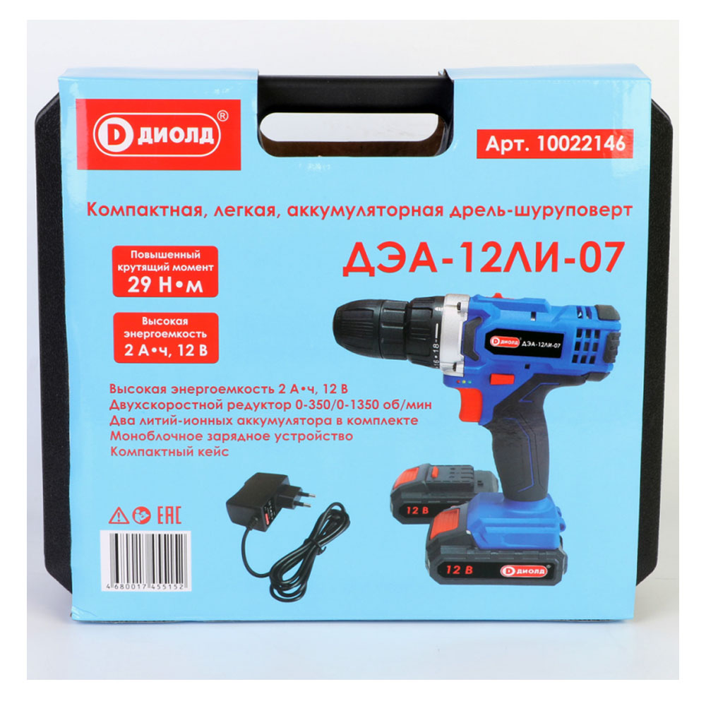 Шуруповерт акк. ДИОЛД ДЭА-12 ЛИ-07 (акк.2,0 Ач, крут. момент 29Нм)