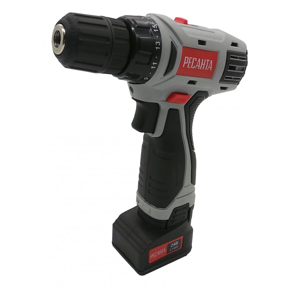 Дрель-шуруповерт аккумуляторная ДА-24-2ЛК Ресанта – незаменимый помощник мастера в ремонте или строительстве. Электроинструмент является аналогом модели ДА-24Л-2, отличие: есть кейс и второй аккумулятор. Прибор аккуратно сверлит отверстия на поверхностях из дерева и металла, а также накрепко закручивает шурупы. В комплект к дрели-шуруповерту поставляется удобный кейс, в котором можно хранить инструмент, зарядку к нему и другие рабочие детали. Не требует подключения к сети, что позволяет использовать ее в помещениях, где нет доступа к системе электропитания. Рабочие элементы легко заменить благодаря быстрозажимному патрону. Для ослабления креплений и выкручивания шурупов есть обратный ход. Форма рукоятки удобная, с резиновыми вставками, не скользит в руке. Система охлаждения мотора за счет вентиляционных отверстий на корпусе. Щёточный двигатель, две скорости (0-400 об/мин и 0-1400 об/мин). Модель работает от надёжного литий-ионного аккумулятора (Li-Ion).
