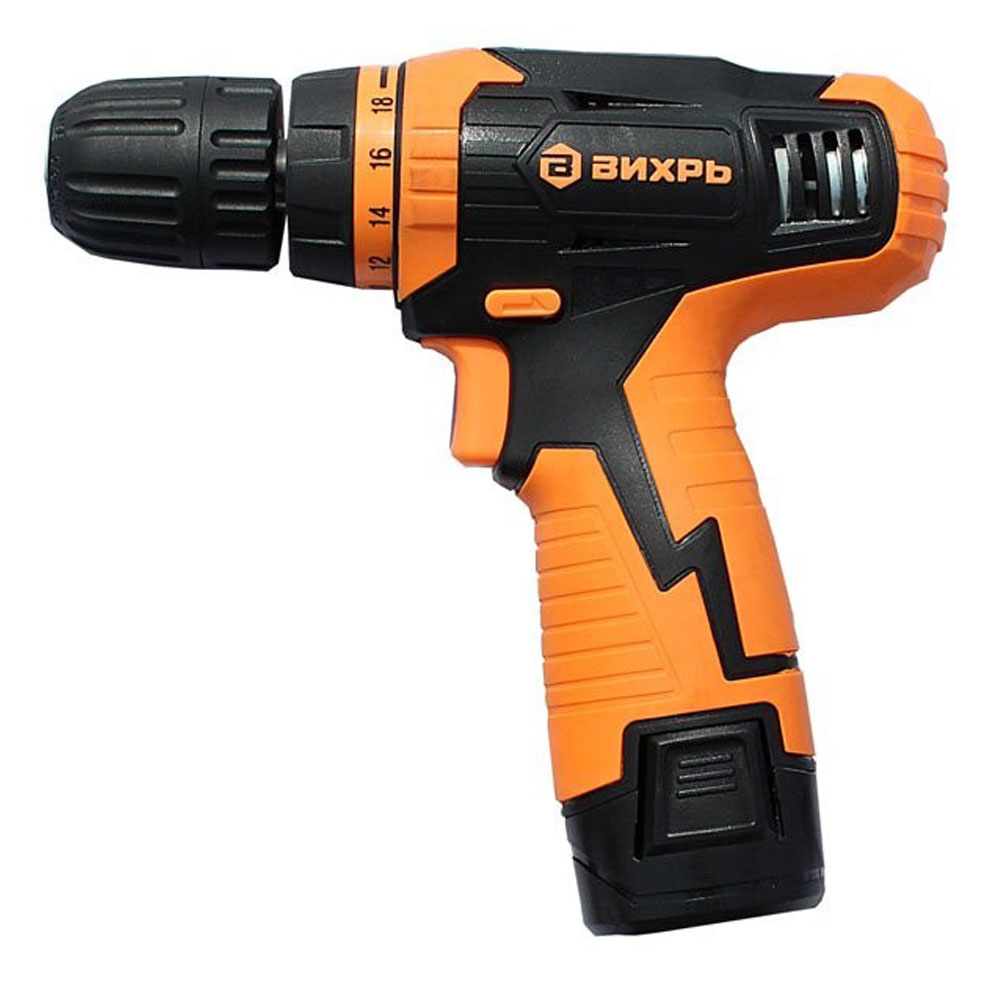 Дрель-шуруповерт аккумуляторная ВИХРЬ ДА-12Л-2К – незаменимый помощник мастера в ремонте или строительстве. Электроинструмент является аналогом модели ДА-12Л-2, отличие: есть кейс и второй аккумулятор. Прибор аккуратно сверлит отверстия на поверхностях из дерева и металла, а также накрепко закручивает шурупы. В комплект к дрели-шуруповерту поставляется удобный кейс, в котором можно хранить инструмент, зарядку к нему и другие рабочие детали. Не требует подключения к сети, что позволяет использовать ее в помещениях, где нет доступа к системе электропитания. Рабочие элементы легко заменить благодаря быстрозажимному патрону. Для ослабления креплений и выкручивания шурупов есть обратный ход. Форма рукоятки удобная, с резиновыми вставками, не скользит в руке. Система охлаждения мотора за счет вентиляционных отверстий на корпусе. Щёточный двигатель, две скорости (0-350 об/мин и 0-1250 об/мин). Модель работает от надёжного литий-ионного аккумулятора (Li-Ion).