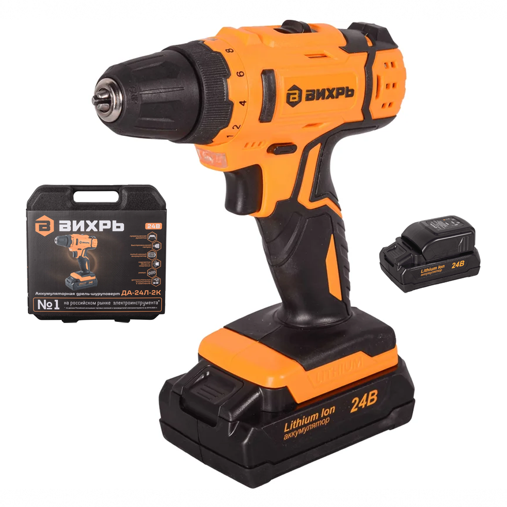 Шуруповерт акк. ВИХРЬ ДА-24Л-2К (напр.24В,2-Li акк,макс.крут.момент 40Нм,емкость акк.2.0Ач)