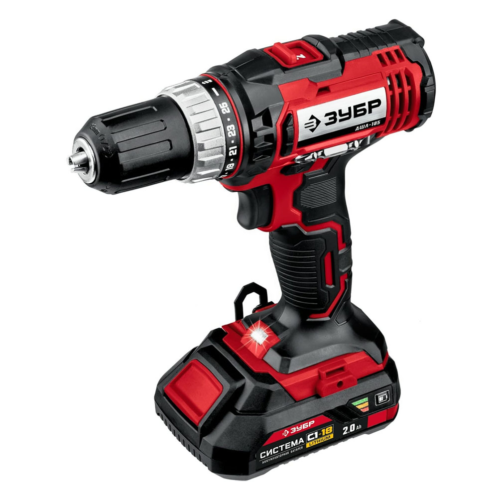 Шуруповерт акк ЗУБР ДШЛ-185-22 (18В,2акк,2,0Ач,40Нм,1,2кг)