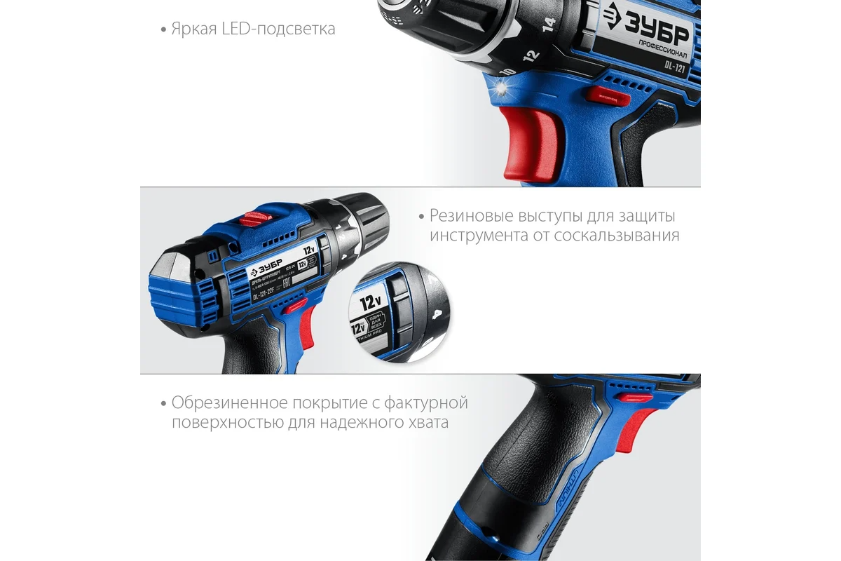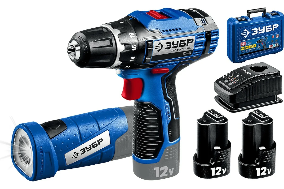 Шуруповерт акк ЗУБР DL-121-22F (12В,2акк,2,0Ач,40Нм,0.96кг) + фонарь
