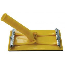 Инструмент оснащен металлическими зажимами, с помощью которых фиксируются сетки и шлифовальные листы.