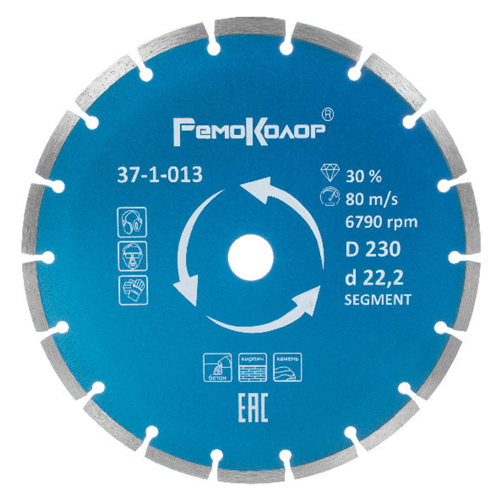 Круг отрезной алмазный 230 х 22 сегм. сухая резка РемоКолор Проф