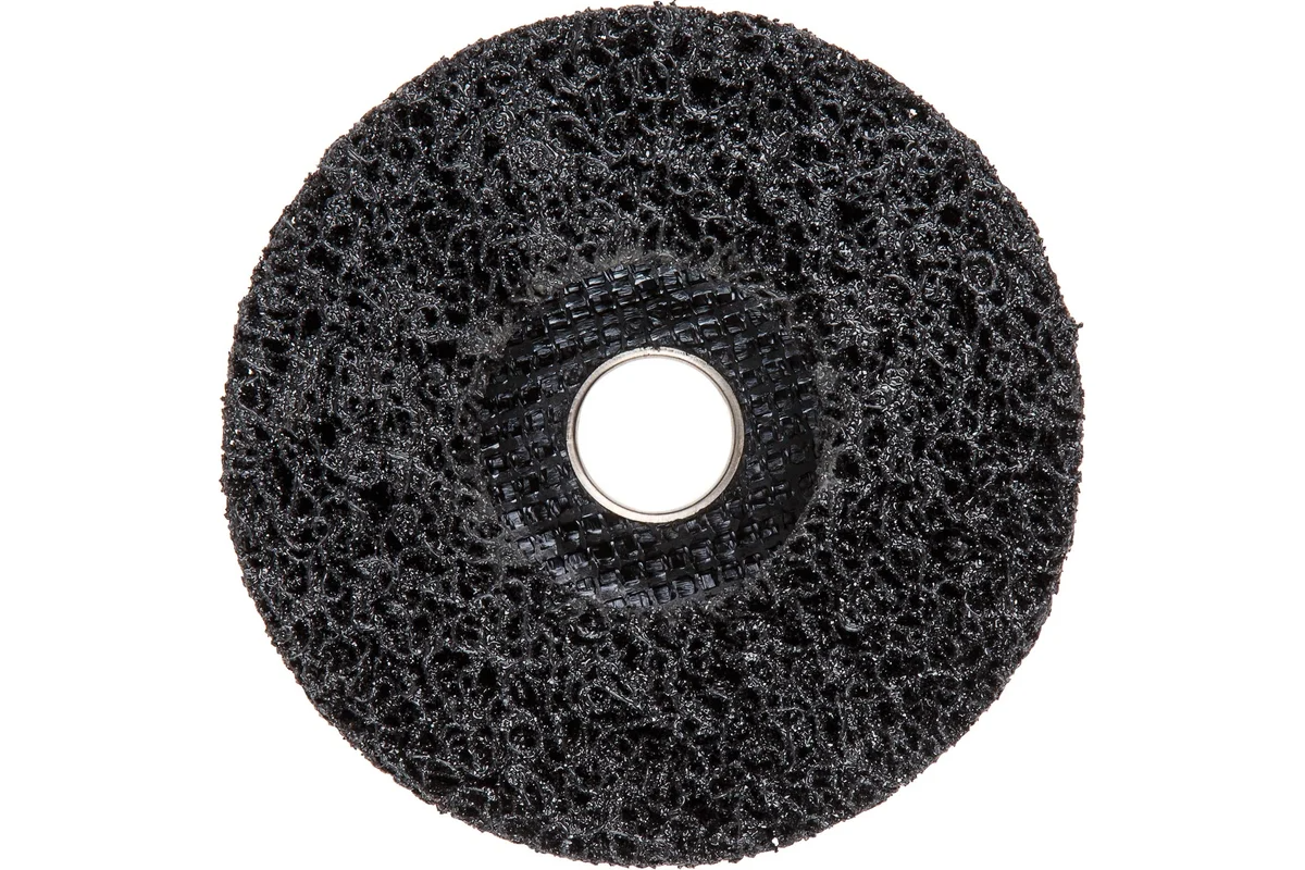 Материал: пористая структура из нейлонового волокна с абразивным слоем из карбида кремния, нетканая основа, обод из инструментальной стали.