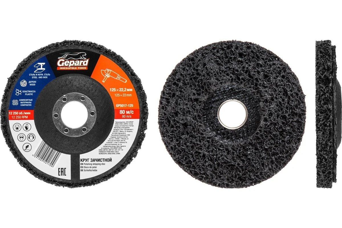 Круг зачистной 125x22 мм Gepard GP5017-125 предназначен для мягкой очистки поверхности от ржавчины, коррозии, старой краски, герметиков, клея, эпоксидных покрытий и других загрязнений. Не снимает металл и не изменяет форму. Используется в УШМ соответствующего типоразмера. Сухая шлифовка.