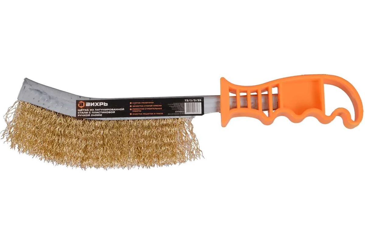 Проволочная щетка Вихрь используется для очистки различных поверхностей от старой краски, ржавчины и прочих загрязнений.