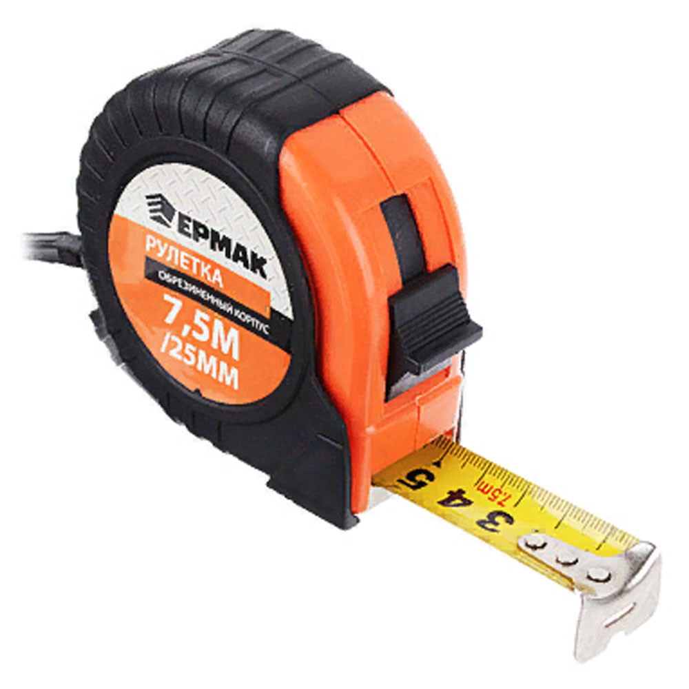 Рулетка 7,5м х 25мм ЕРМАК обрезин. корпус, тройная фиксация