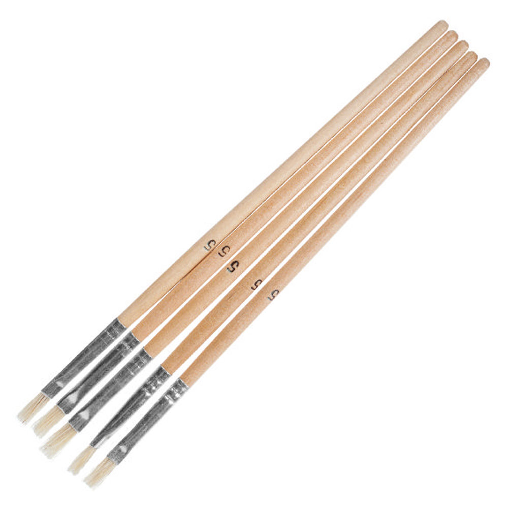 Набор кистей филеночных шириной 5 мм. Благодаря узкой рабочей части, используют для нанесения узких полосок краски (филенок) или миниатюрных трафаретов, окрашивания углов и участков на стыках двух цветов, по кромке оконных рам. Применение: для всех типов лакокрасочных материалов.
