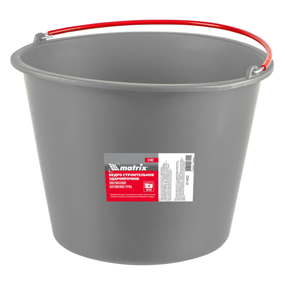 Ведро пластмассовое строительное круглое усиленное, обрезин. ручка 12л MATRIX