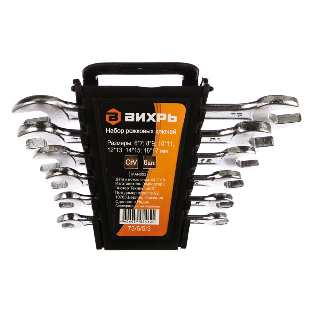 Набор ключей рожковых 6-17мм, 6шт ВИХРЬ