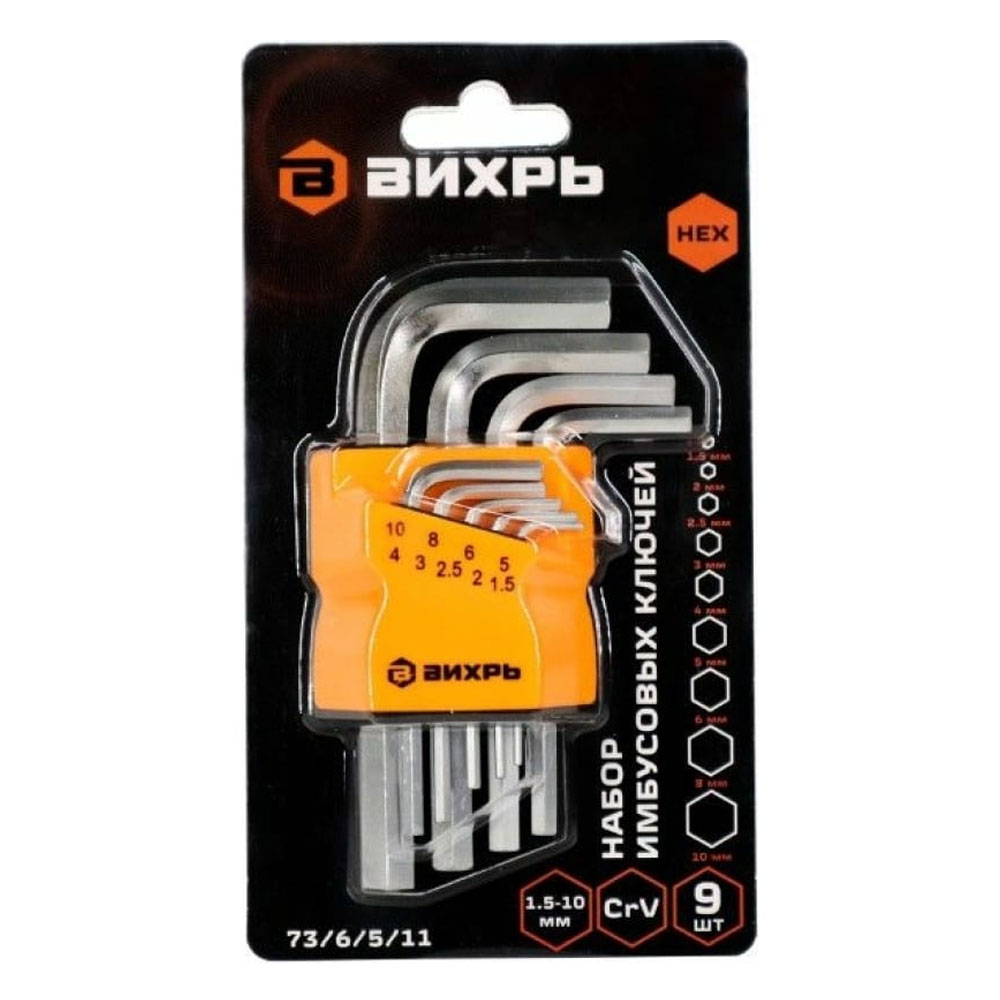 Набор ключей имбусовых HEX 1,5-10мм 9шт ВИХРЬ