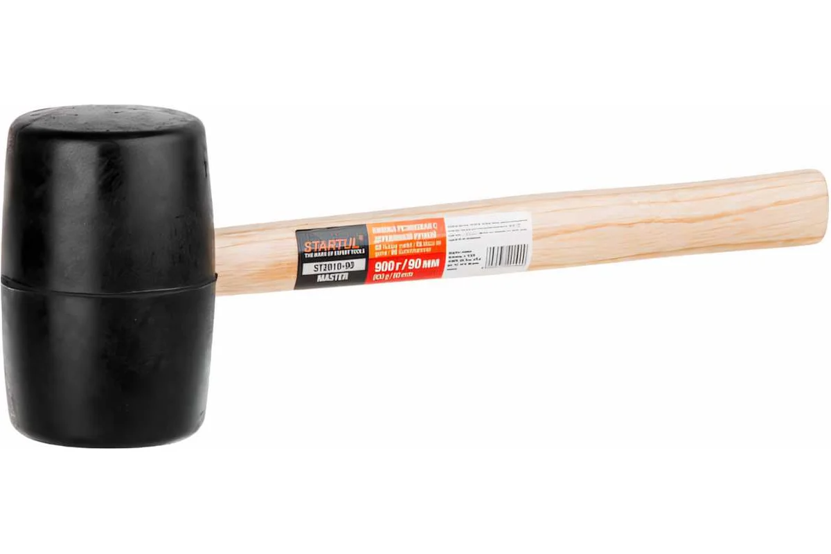 Резиновая киянка STARTUL Master 0,9 кг ST2010-90 применяется для монтажных и строительных работ, укладки тротуарной плитки. Головка киянки цилиндрической формы изготовлена из технической резины черного цвета, для удобства работы боек киянки изготовлен выпуклым. Рукоять выполнена из лиственной древесины твердых пород, тщательно отшлифована и обработана защитно-декоративным покрытием для придания надежности и долговечности инструменту. Крепление головки к рукояти осуществляется в распор с добавлением эпоксидного клея для улучшения прочности соединения.