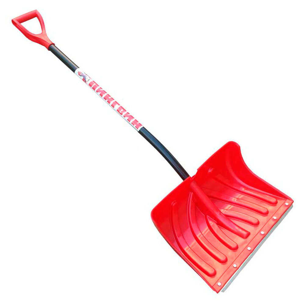 Лопата пластик для уборки снега 490 х 340мм с планкой, с алюм. черенком ПИНГВИН