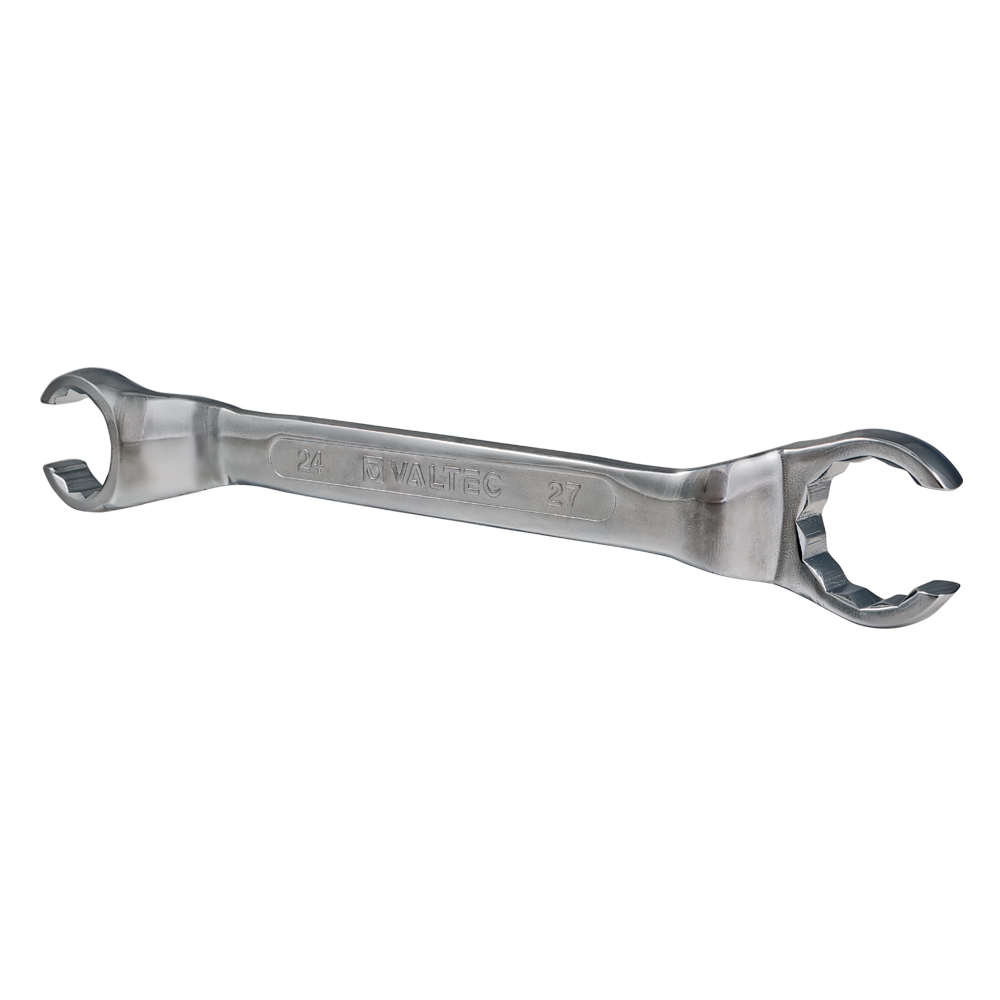 (VT.AC670.0) Ключ для коллекторных фитингов – инструмент, значительно облегчающий подключение трубных петель к коллекторам, особенно необходимый монтажникам систем водяного теплого пола, которым часто приходится монтировать оборудование в стесненном пространстве распределительного шкафа. Головки ключа имеют разрезы, через которые удобно продеть присоединенную трубу, предварительно наживив накидную гайку соединителя на отвод коллектора. Конфигурация головки позволяет плотно охватить гайку и произвести ее затяжку. Ключ – двухсторонний, обеспечивает монтаж/демонтаж фитингов стандартов «конус» (1/2”), «евроконус» (3/4”).