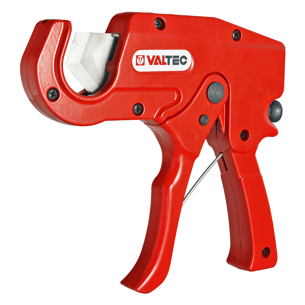 (VTm.397.0) Труборез гильотинного типа для пластиковых, металлопластиковых труб диаметром до 32 мм. Имеет храповой механизм привода сменного лезвия. Использование инструмента обеспечивает точное разрезание трубы с минимальным усилием. Возврат рукоятки и ножа в исходное положение производится пружиной. Применяется при монтаже полиэтиленовых, металлополимерных, однослойных и армированных полипропиленовых, иных полимерных и многослойных труб. Без профессионального инструмента нельзя гарантировать перпендикулярный разрез, сохранение геометрии трубы.