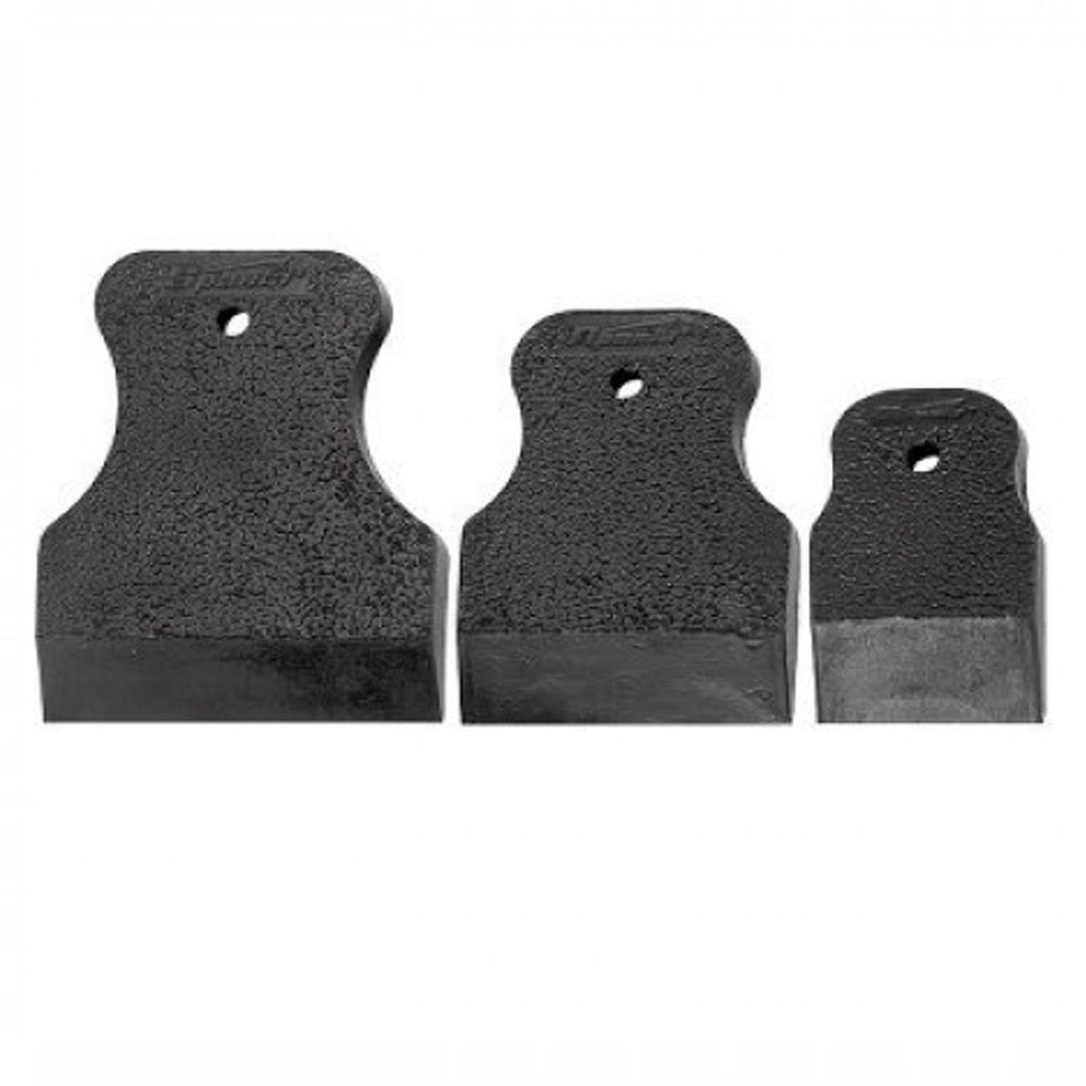 Набор шпателей может применяться используется для замазки швов или небольших неровностей во время строительных и шпаклевочных работ. Шпатели выполнены из черной резины, гибкой и надежной.