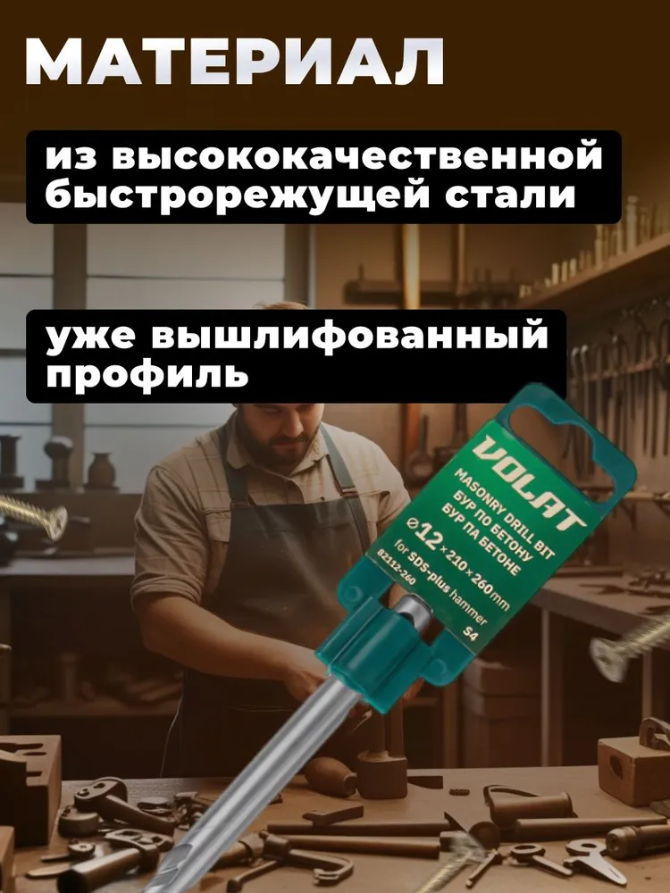 Бур сверло SDS-plus S4 10x260x310 мм ВОЛАТ 82110-310 используется в перфораторах с типом крепления SDS-plus для сверления отверстий в бетоне, кирпичной кладке, камне, граните.