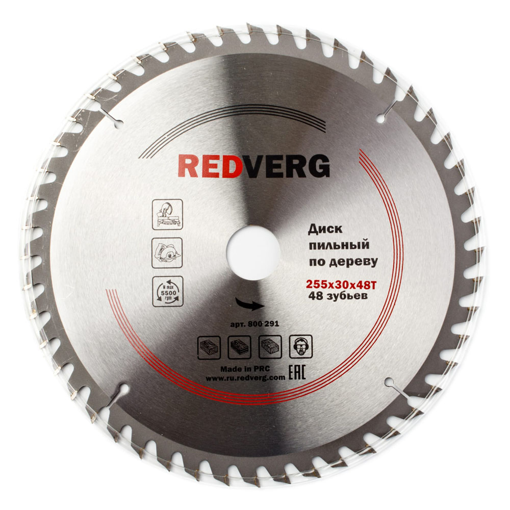 Диск пильный по дереву RedVerg твердосплавный 255х30 мм, 48 зубьев (800291). Макс. 5500 об/мин.