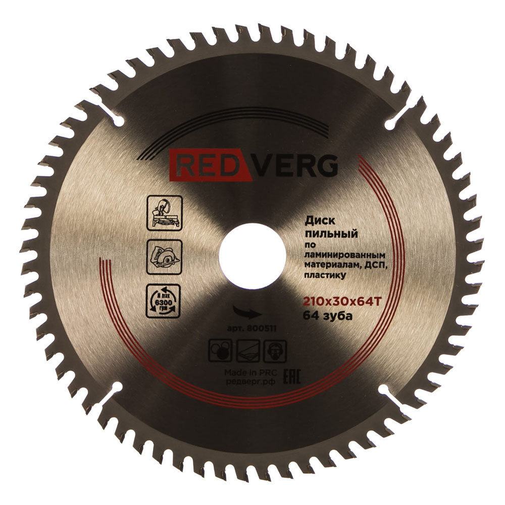 Диск пильный по ламинату 210х30/20/16мм. 64 зуба REDVERG