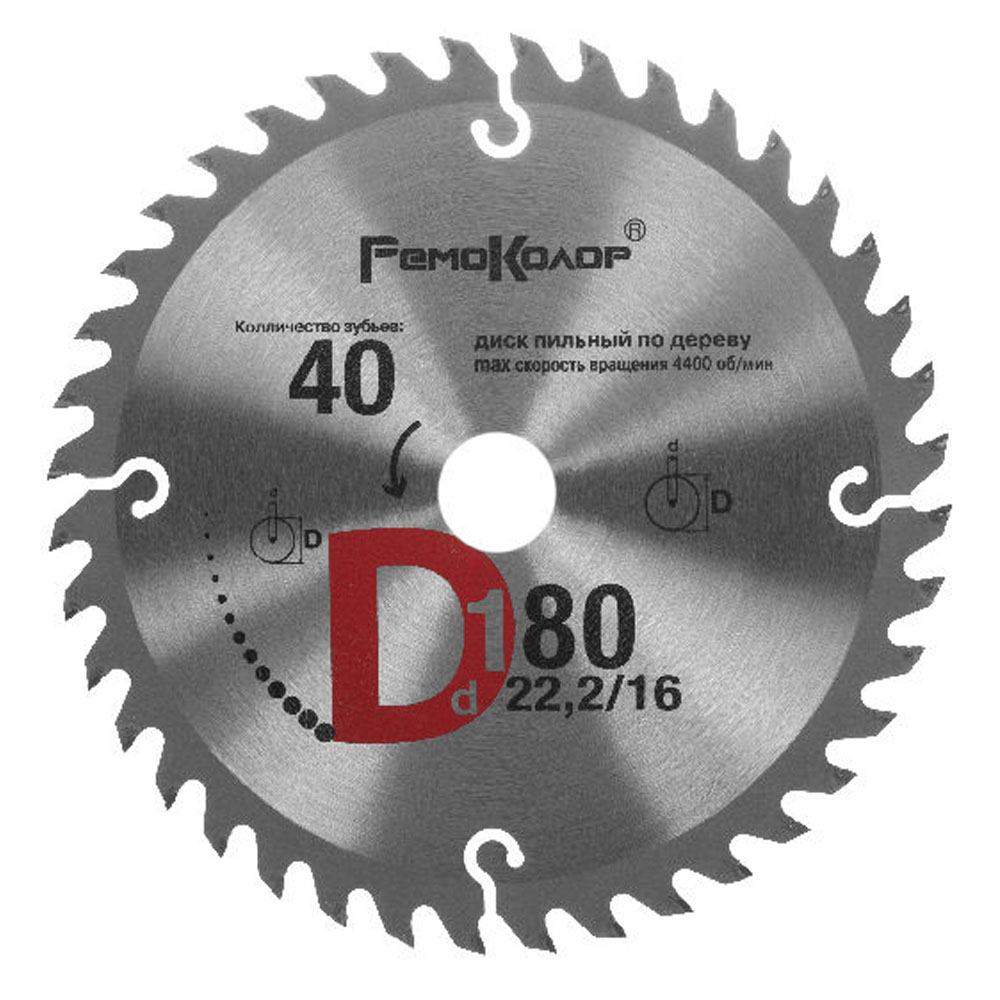Диск пильный по дереву 180х22,2/16мм (40зуб) РемоКолор Проф