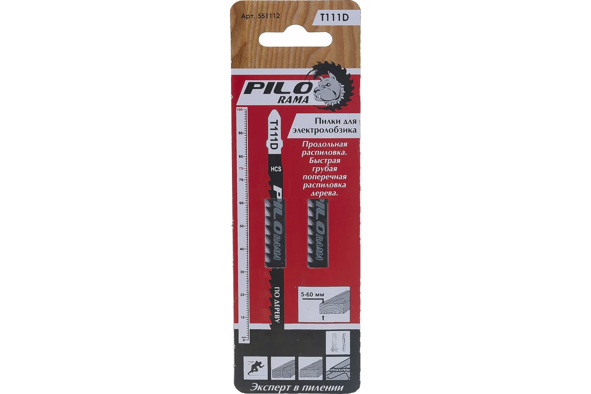 Полотна для эл/лобзика T111D, дерево (2шт/уп.) PILORAMA