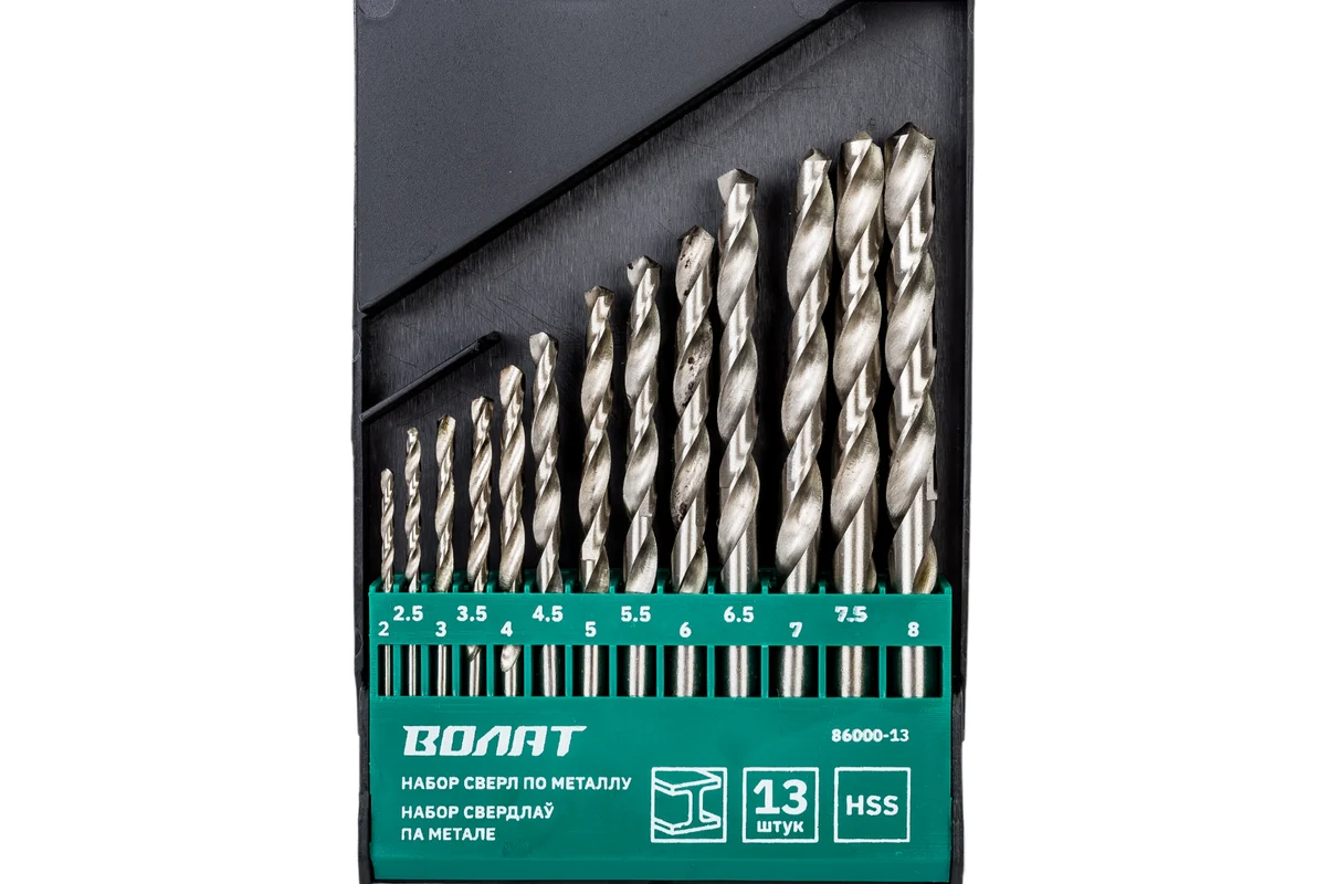 Набор сверл по металлу (2,0- 8,0мм) 13шт ВОЛАТ