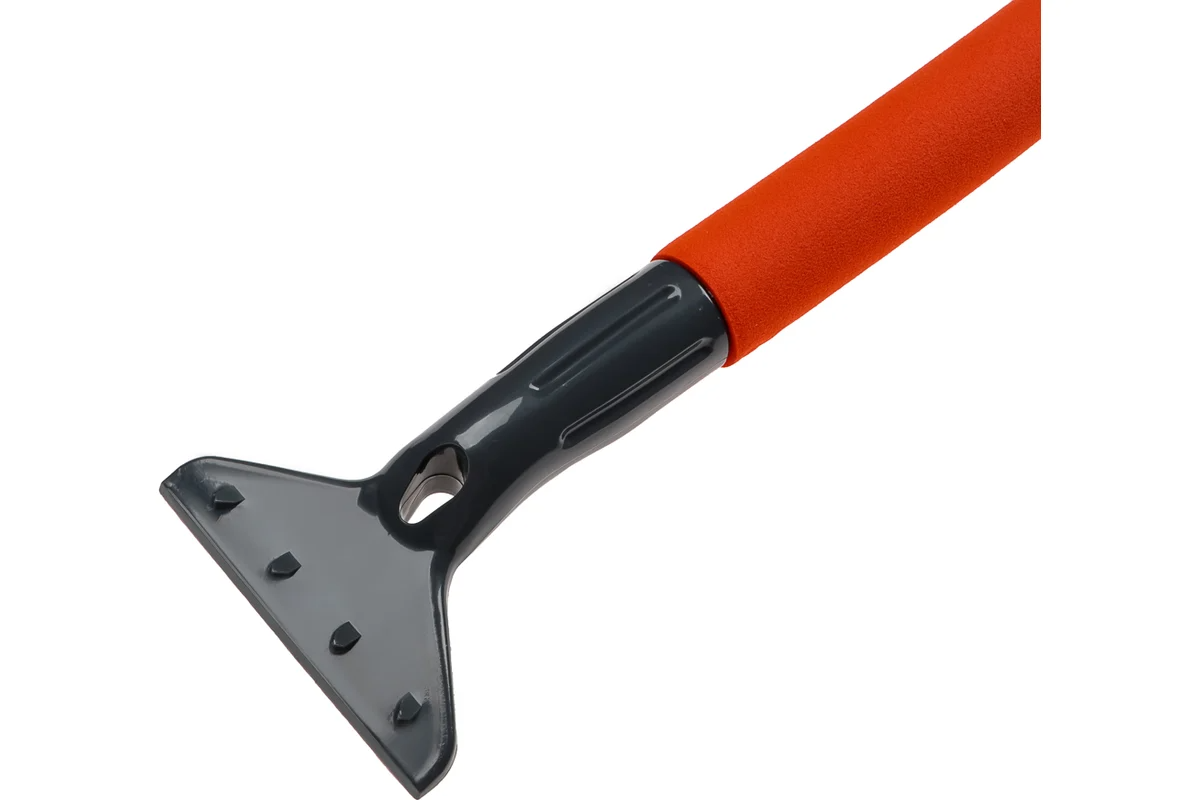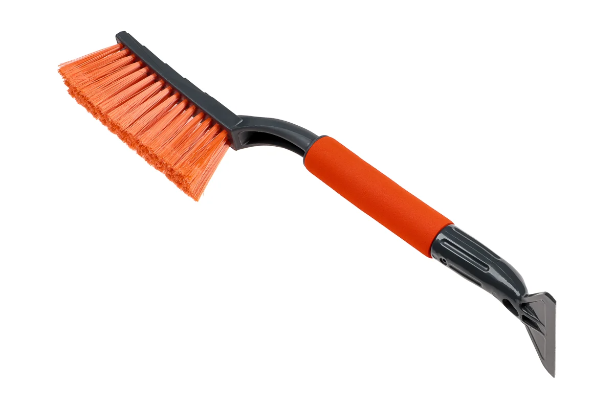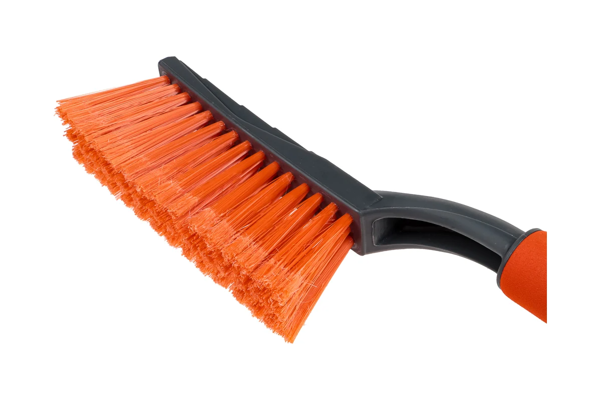 Универсальная щетка для очистки автомобиля от снега, наледи, листьев, воды или грязи. С одной стороны щетки расположен прочный скребок, который без труда справится со льдом, образовавшимся на стекле автомобиля. На другом конце- щетка с длинной прочной щетиной, которая быстро и качественно поможет очистить автомобиль от опавших листьев, пыли или снега. Мягкое покрытие на ручке надежно ложится в руку и не замерзает, поэтому инструмент можно использовать без перчаток.