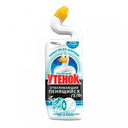 Средство для сантехники Утенок Чистящий гель 750 мл. предназначено для удаления стойкий пятен, включая ржавчину и известковый налет. Глубоко очищает даже под водой. Благодаря удобной форме горлышка средство лучше попадает в труднодоступные места скопления бактерий под ободком унитаза.