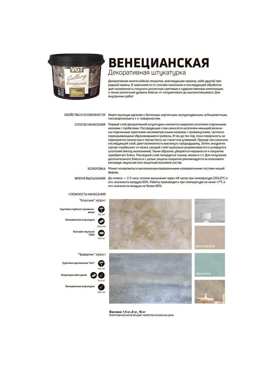 Штукатурка декоративная 16,0кг ВЕНЕЦИАНСКАЯ ВГТ