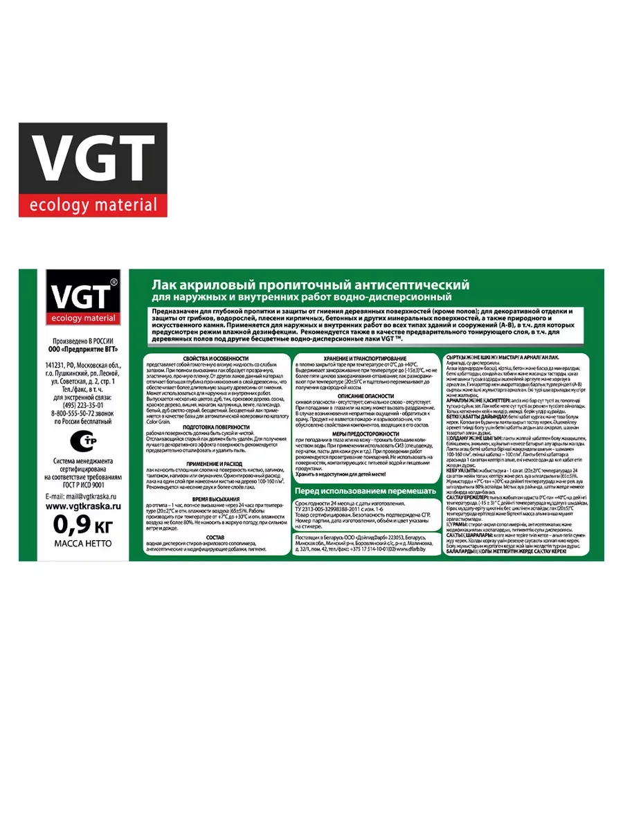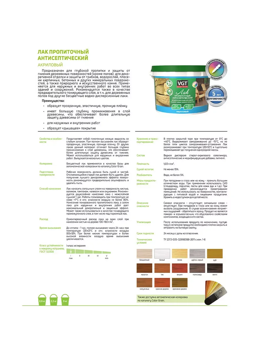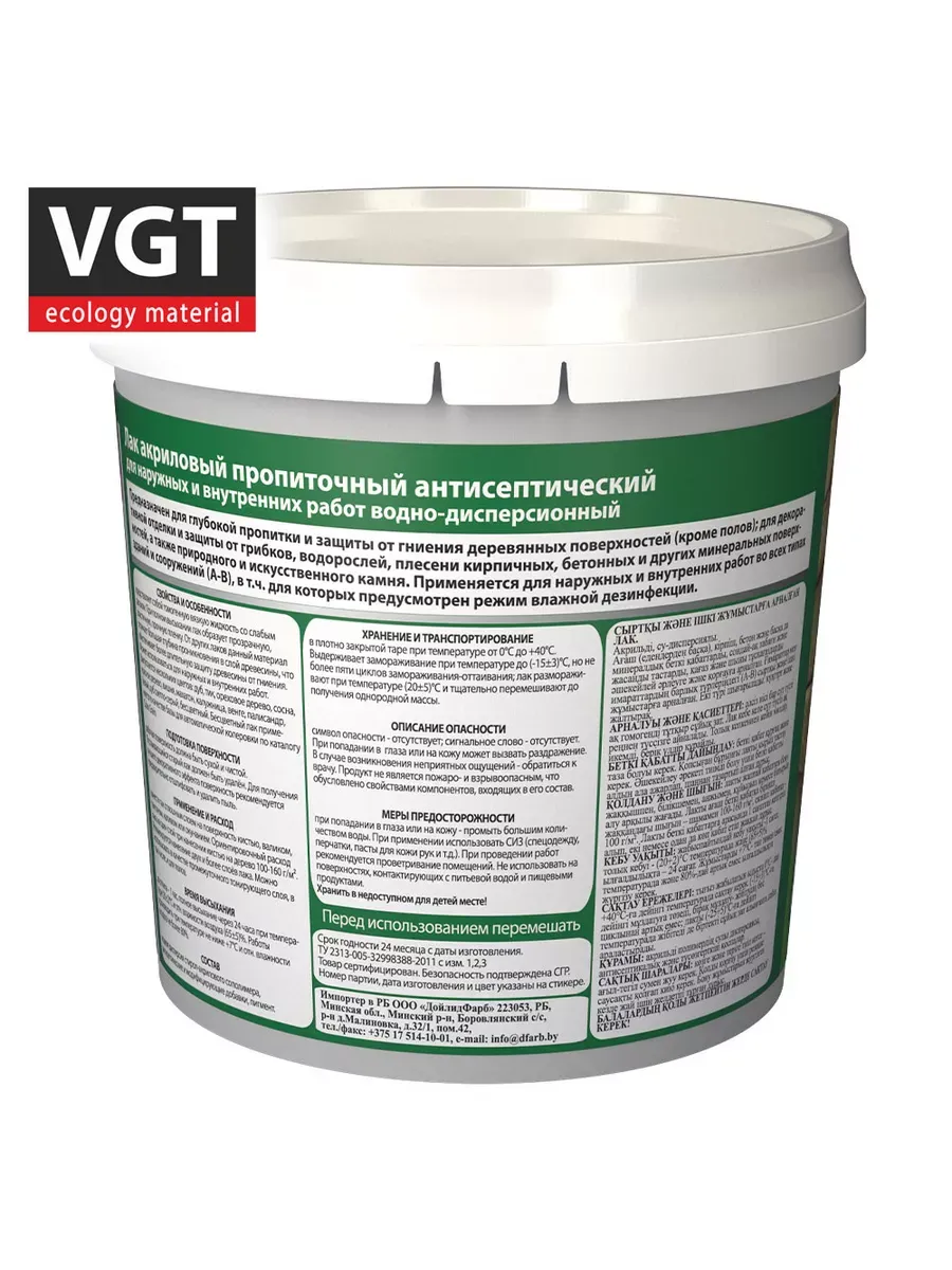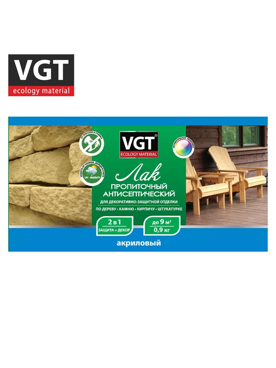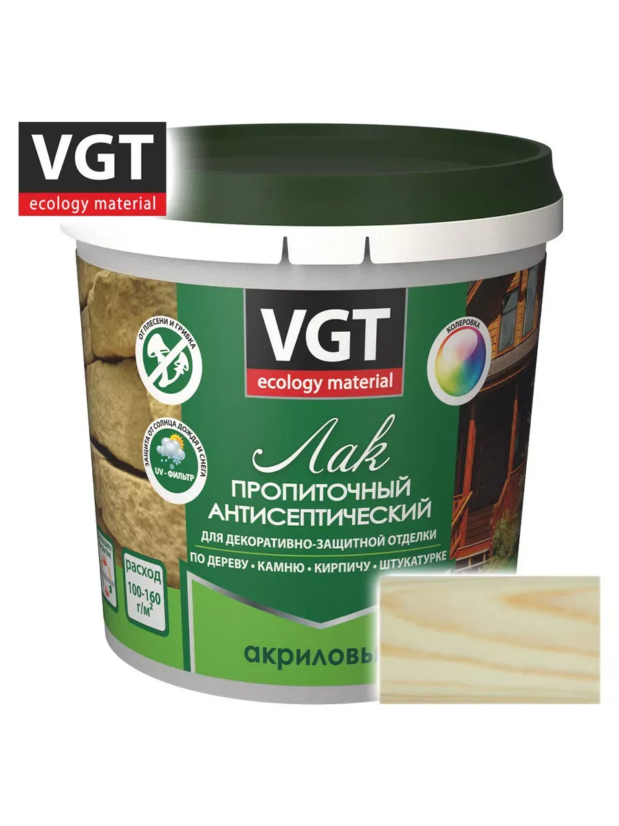 Лак акриловый с антисептиком б/цв 0,9кг ВГТ