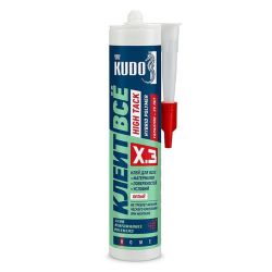 Гибридный (современный аналог MS-полимеров) клей-герметик KUDO устойчив к нагрузкам и вибрациям. Тиксотропный, при нанесении не растекается и не сползает по шву. После отверждения можно шлифовать и окрашивать водными и синтетическими красками.