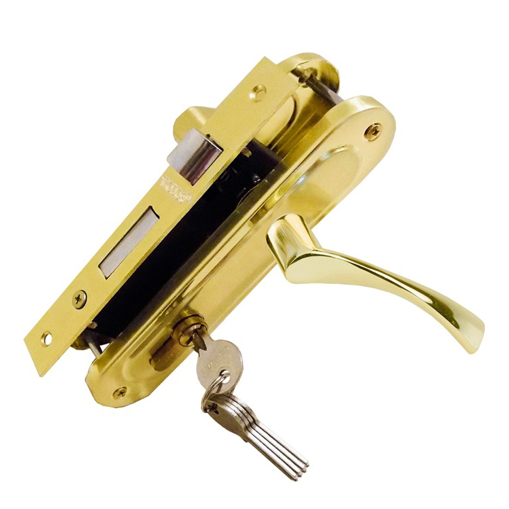 Замок врезной с ручками 70-L/76 PB золото TRODOS