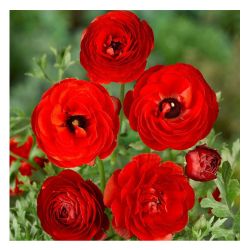 Ранункулюс (или лютик) Красный - неприхотливый травянистый многолетник, достигающий высоты 40-45см. Листья тройчато-рассеченные. Махровые цветки, диаметром 5-7см, очень изящные и нежные, по окраске – ярко красные.