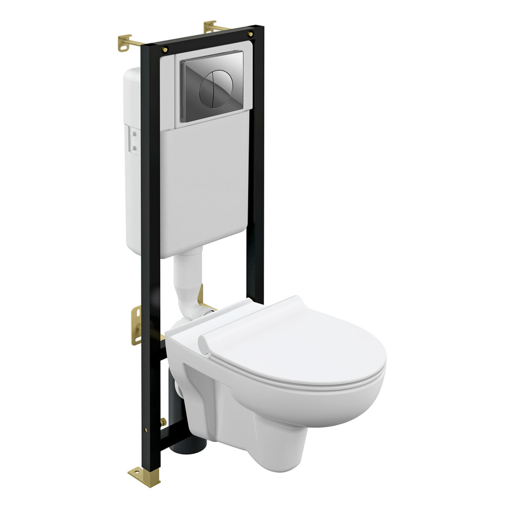 Комплектация подвесной унитаз, крышка-сиденье, инсталляция, шумаизоляционная прокладка, монтажный комплект, гарантийный талон/инструкция