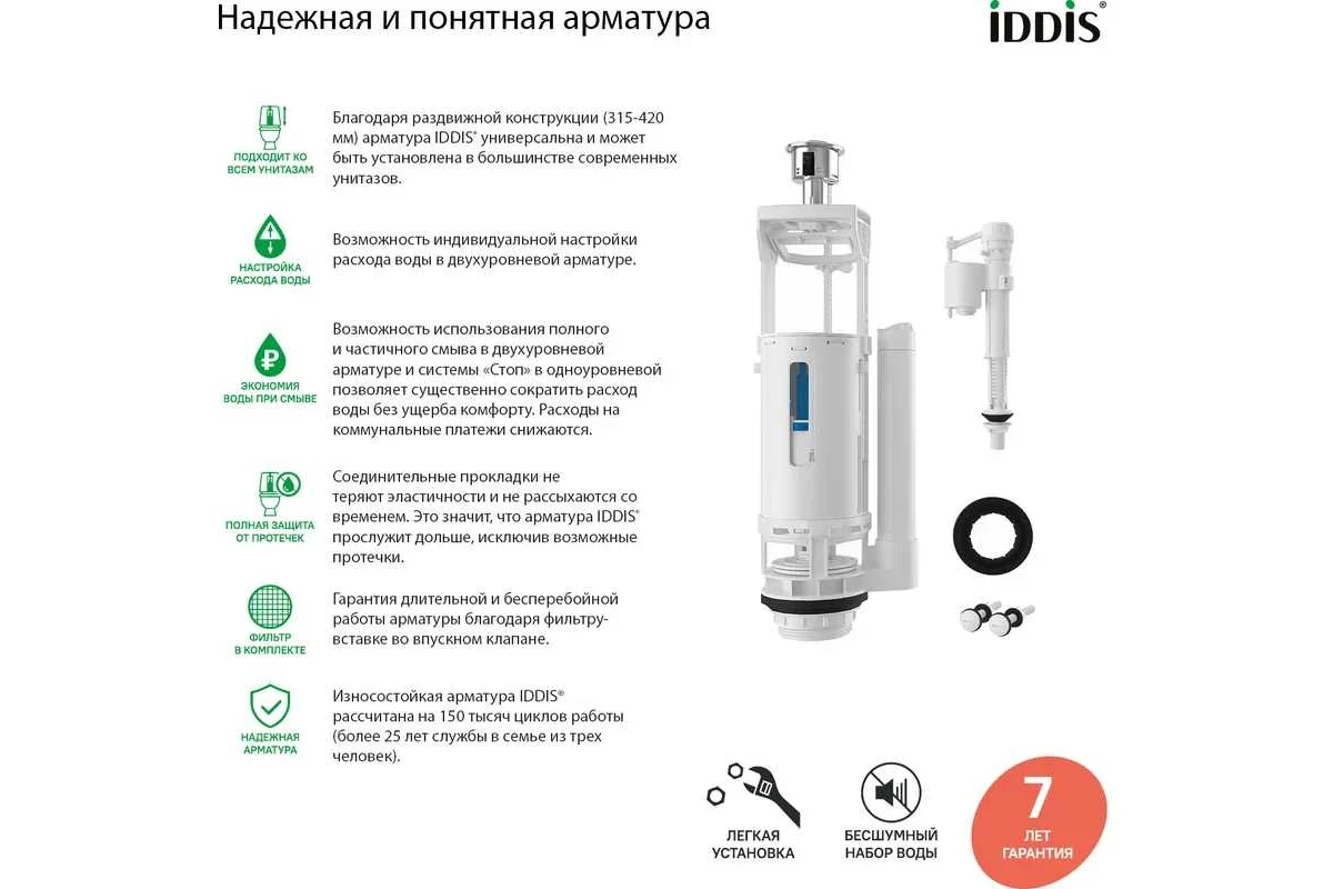 Арматура для унитаза IDDIS кноп. хром н/п