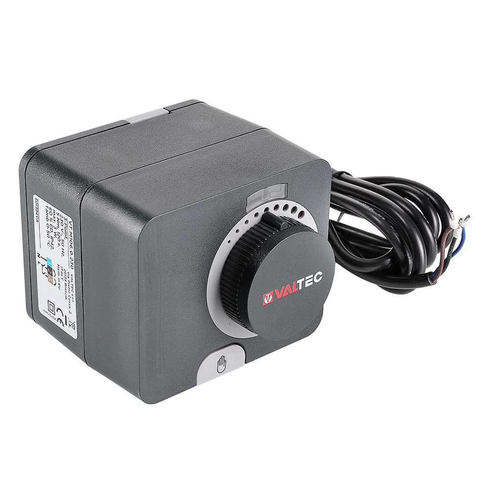 (VT.M106.0) Сервопривод предназначен для автоматического управления трех- и четырехходовыми смесительными клапанами VALTEC и аналогичными им с помощью термостата или контроллера. Управление – импульсное. Напряжение питания – 220 или 24 В. Возможно переключение на ручное управление. Привод подключается к клапану с помощью переходной втулки (входит в комплект поставки). Максимально допустимая температура нагрева корпуса клапана (арматуры) – 150 °С.
