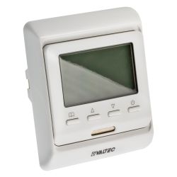 (VT.AC709.0) Хронотермостат предназначен для подачи управляющего сигнала (включить/выключить) на регулирующие устройства водяного теплого пола и радиаторного отопления. Управление осуществляется в зависимости от температуры воздуха в помещении (встроенный датчик) и температуры пола (выносной датчик, входит в комплект). Возможны недельное программирование и выбор режима работы – по датчику температуры воздуха или датчику температуры пола. Монтаж термостата производится в стандартную коробку скрытой проводки.