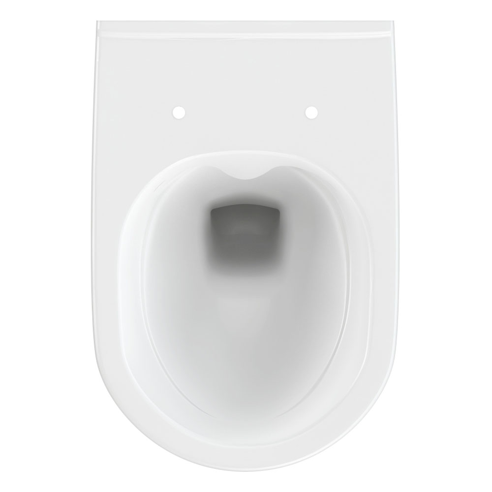 Комплектация Унитаз настенный керамический безободковый; сиденье для унитаза из дюропласта ультратонкая легкосъемная с функцией плавного закрывания; инструкция/гарантийный талон