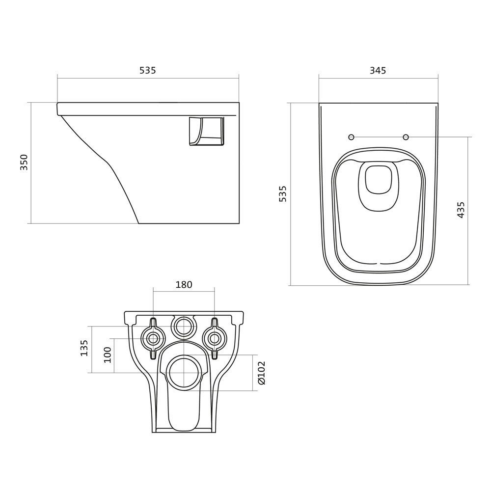 Чаша безободкового подвесного унитаза "Лайн" rimless 1.WH50.1.608; 1.WH50.1.575 тонкое дюропластовое сиденье с функцией мягкого закрывания и быстрого снятия