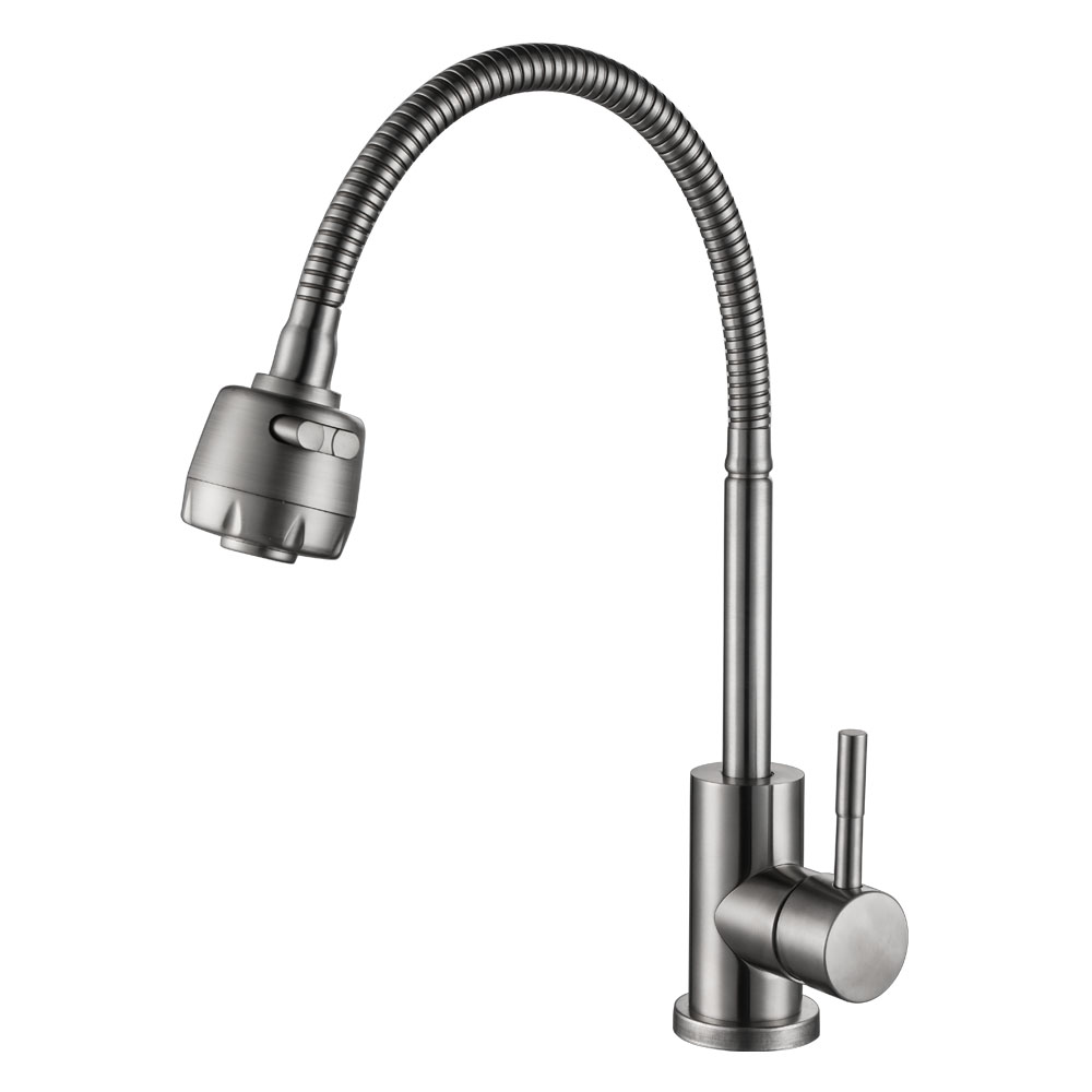 Смеситель для кухни, однозахватный, нержавеющая сталь, цвет - хром, керамический картридж Wanhai 35 мм, гибкий излив, пластиковый аэратор 2-х режимный. В комлекте: гибкая подводка 40см, крепёж латунная гайка. Упаковка: коробка, индивидуальный пакет.